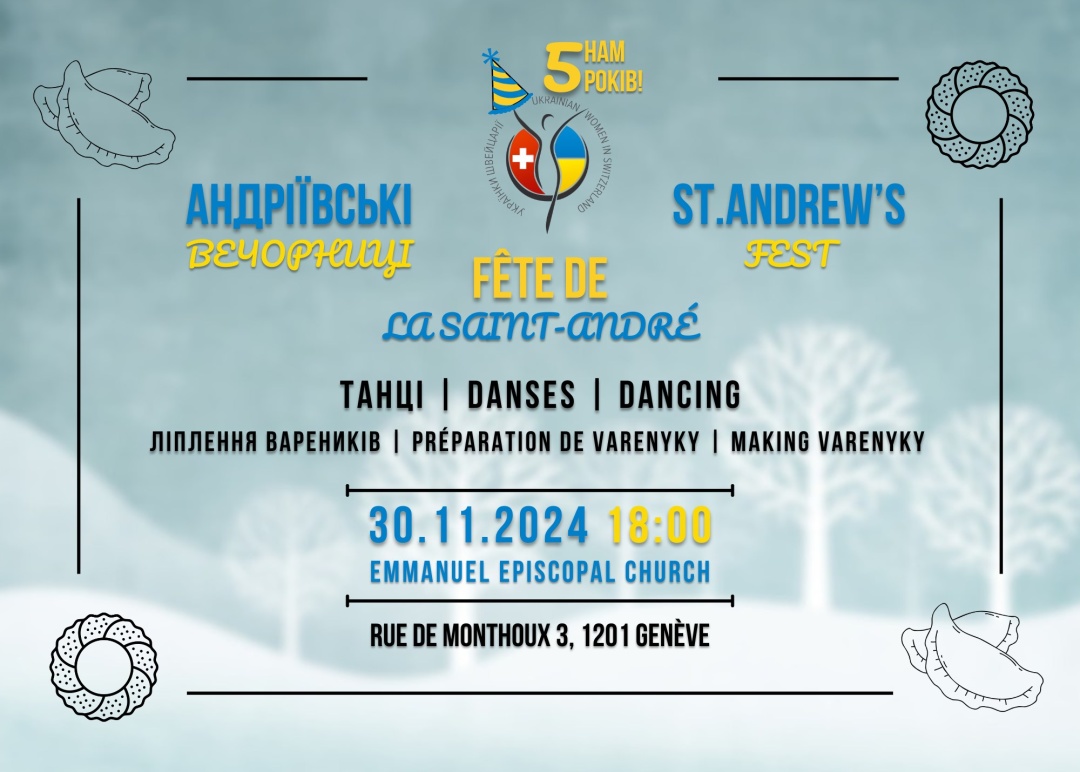 Асоціація «Українки Швейцарії» та ансамбль українського танцю «СвіТанок» запросили охочих на Андріївські вечорниці у Женеві, які відбудуться з нагоди 5-ліття асоціації.