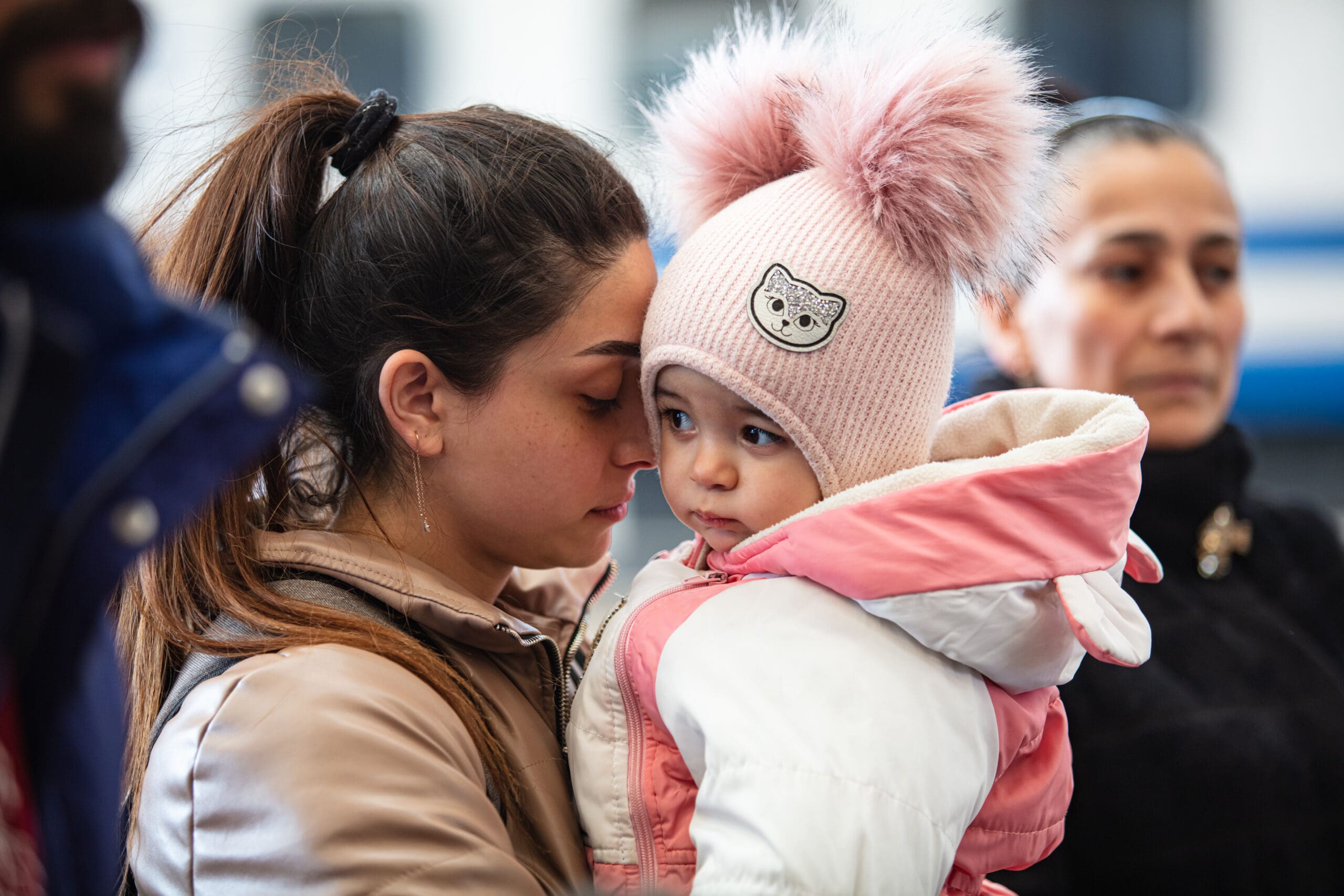 Lviv, Ukraine - March 24, 2022: Ukrainian refugees from Mariupol on Lviv railway station waiting for train to escape to Europe