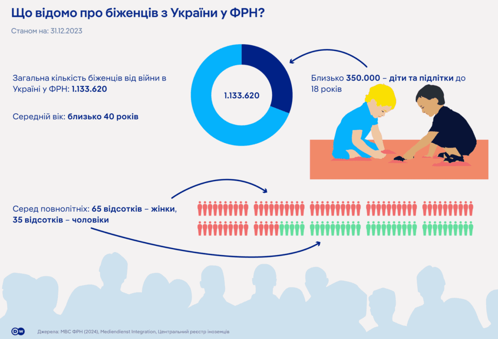 За даними різних досліджень, від 29 до 44 відсотків українських біженців від війни у ФРН висловлювали намір залишитися в країні надовго чи навіть назавжди.