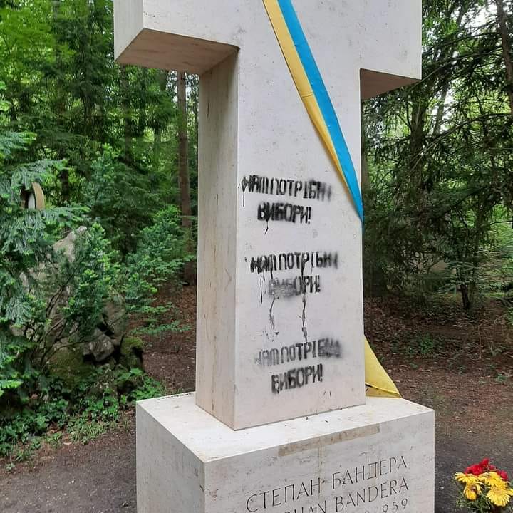 У Мюнхені вкотре осквернили могилу Степана Бандери, провідника українського національно-визвольного руху. Цього разу на пам’ятнику залишили провокаційні написи, імовірно зроблені російськими спецслужбами. Інцидент став відомим завдяки Олегу Медуниці, керівнику Організації українських націоналістів – бандерівців.