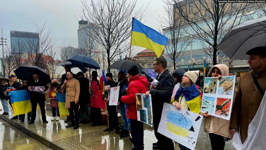 У місті Катовіце Об’єднання Українців Польщі 24 січня провело акцію Speak Up, Silence Breaks («Говори, мовчання руйнує»), щоб нагадати світові, що війна в Україні триває, а Росія продовжує тероризувати українців ракетно-бомбовими і дроновими обстрілами. До акції долучилися українські дипломати, поляки, українські біженці, які прийшли разом із дітьми, повідомляє “Радіо Свобода”.