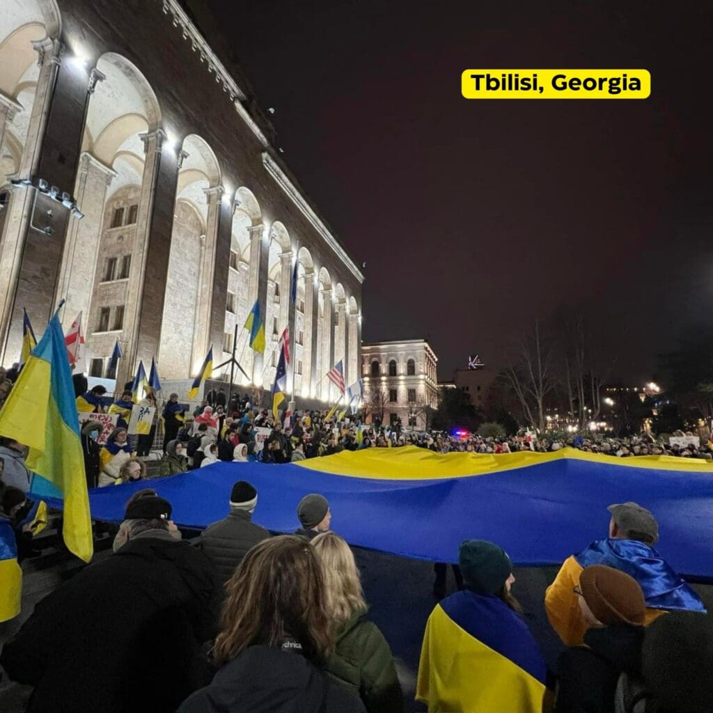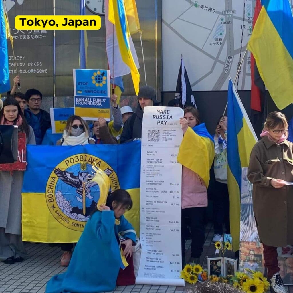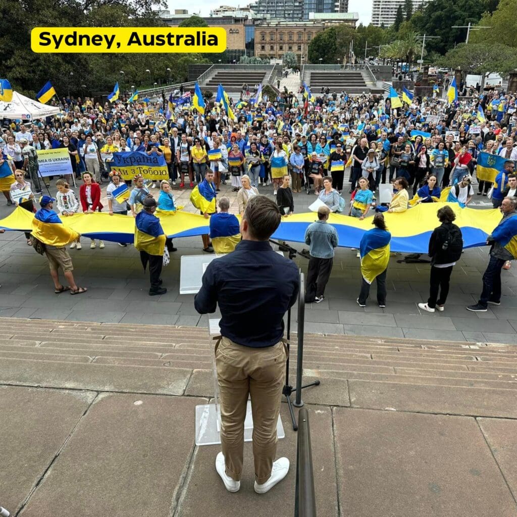 До річниці повномасштабного вторгнення в понад 700 містах з майже 70 країн світу відбуваються акції солідарності та підтримки України. Серед основних організаторів – Світовий Конгрес Українців. Основне гасло, як і два роки тому, перед початком великої війни – #StandWithUkraine. Учасники закликають світову спільноту та уряди збільшити підтримку боротьби українців.