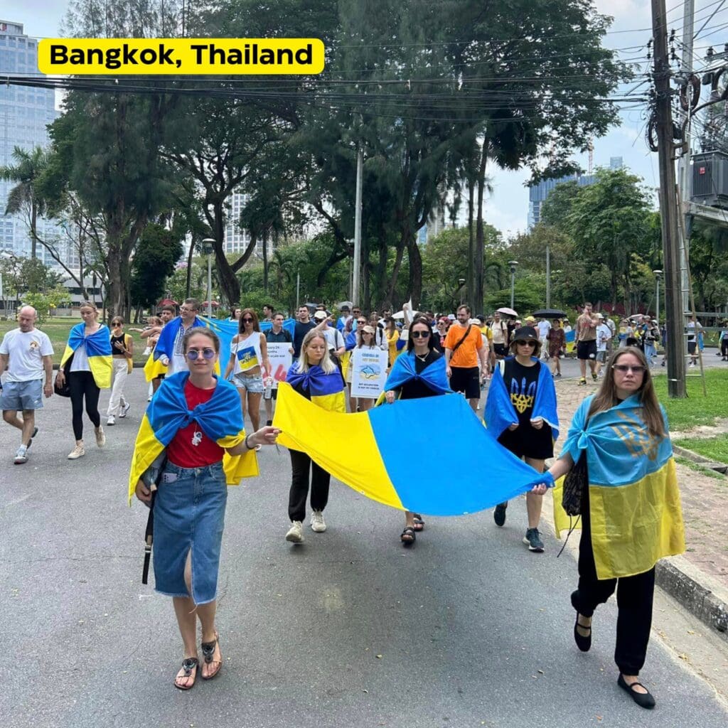 Українці, які беруть участь в заходах, нагадують, що кривава війна в центрі Європи триває і московський диктатор не збирається зупинятися.