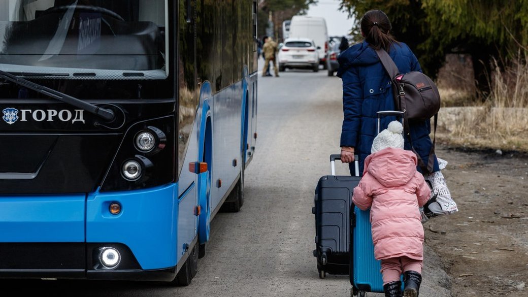 Біженці з України на кордоні зі Словаччиною (КПП "Ужгород- Вишнє Нємецьке") в Закарпатській області, 26 лютого 2022 р. Фото Немеш Янош / УНІАН