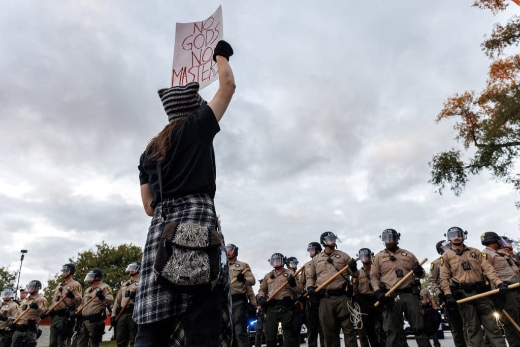 Протестувальник біля слідчого ізолятора Імміграційної та митної служби США (ICE) у Бродвью, штат Іллінойс, США, 11 жовтня 2025 рокуPAP/EPA/CRISTOBAL HERRERA-ULASHKEVICH